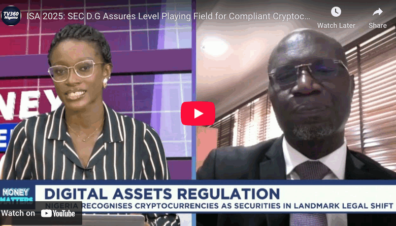 Home/Money Matters/ISA 2025: SEC D.G Assures Level Playing Field for Compliant Cryptocurrency Investors Money Matters ISA 2025: SEC D.G Assures Level Playing Field for Compliant Cryptocurrency Investors ISA 2025: SEC D.G Assures Level Playing Field for Compliant Cryptocurrency Investors TV360 NigeriaApril 8, 20250 36 Less than a minute Share this: TV360 NigeriaApril 8, 20250 36 Less than a minute Share Facebook X LinkedIn Tumblr Pinterest Reddit VKontakte Skype Messenger Messenger Share via Email Print